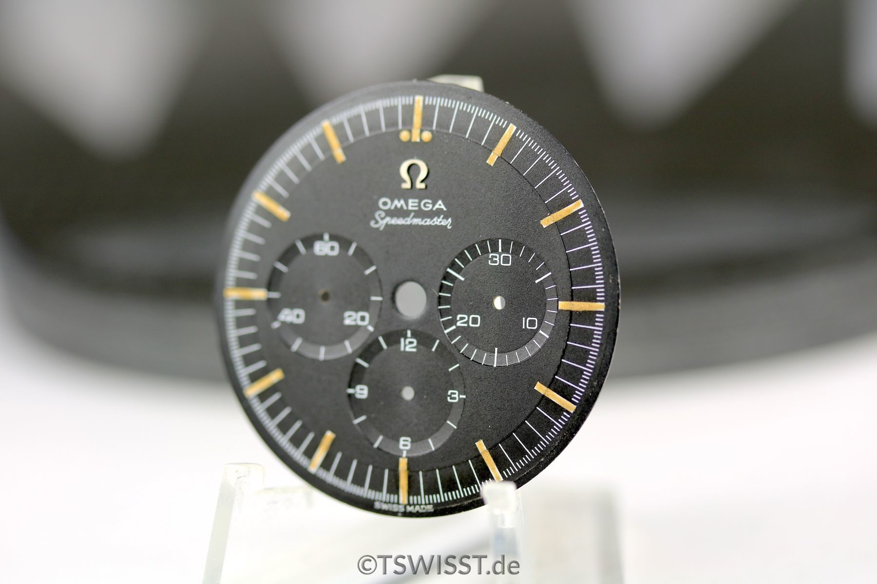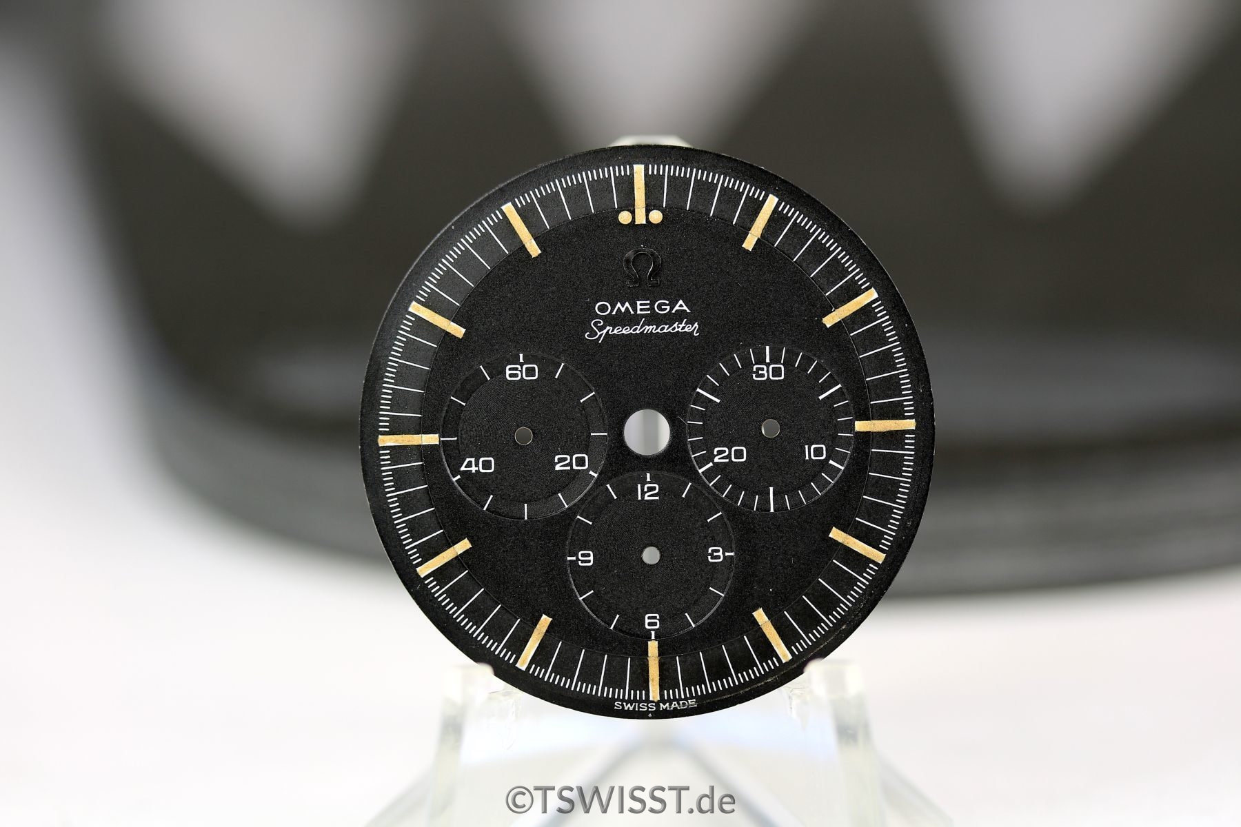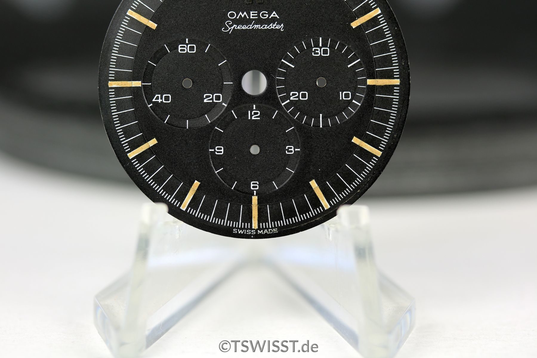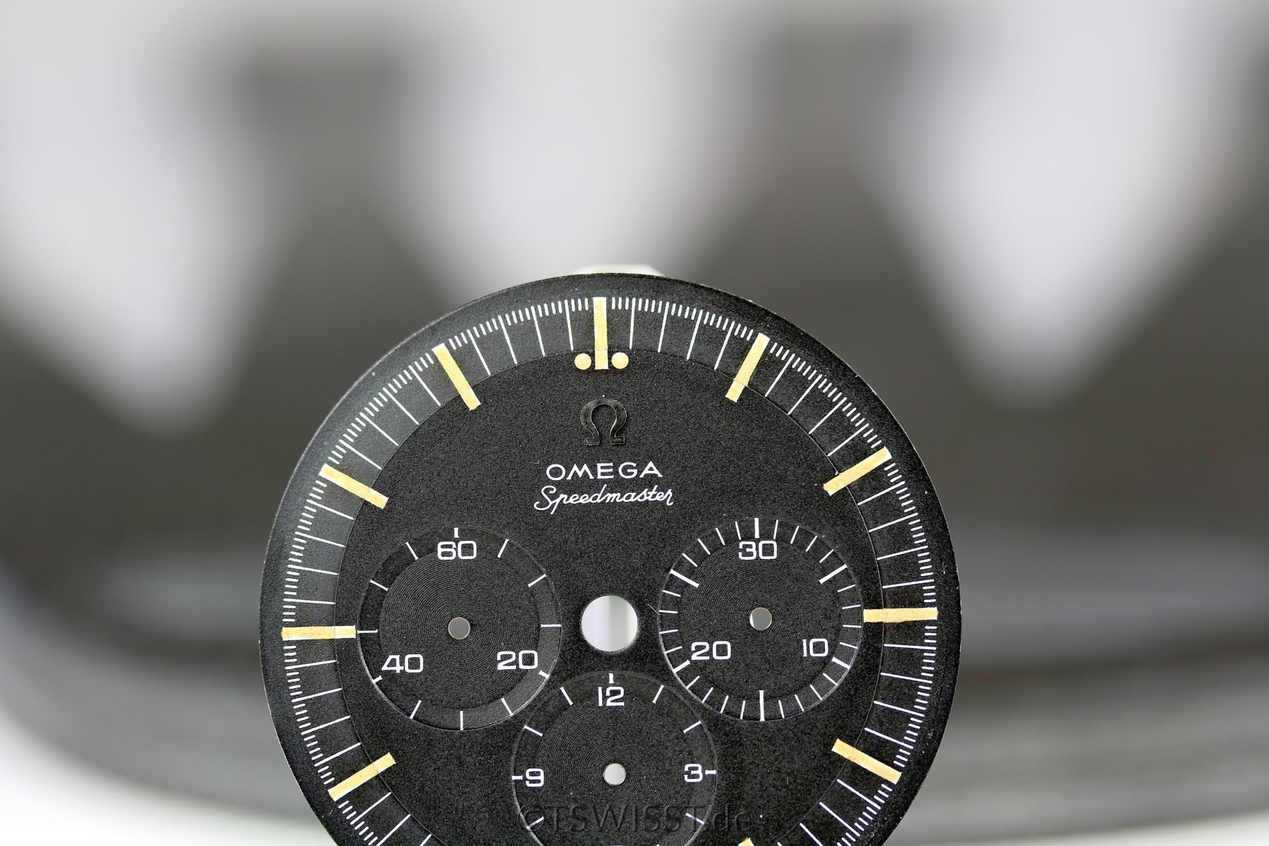Omega Zifferblatt für Speedmaster 2998 in sehr guter Erhaltung mit extrem schöner Patina. Extrem selten ohne Beschädigungen.