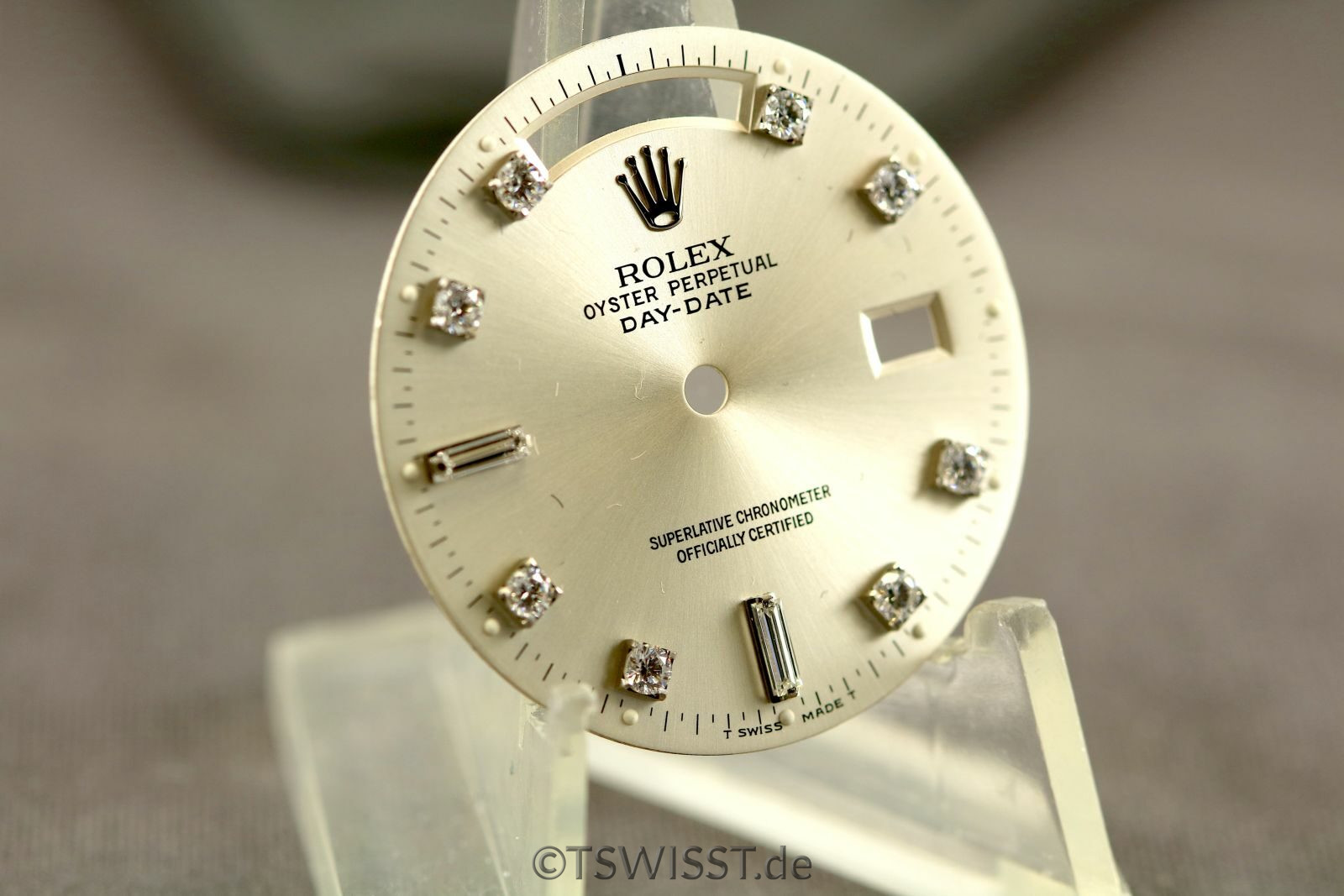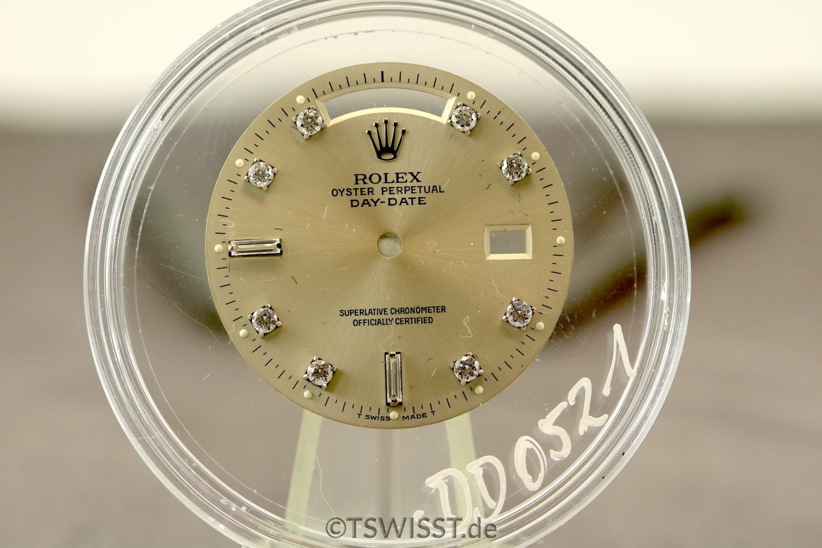 Silver dial for Rolex Day Date 36 mm, 5 or 6digit ref, platinum model. Original setting. All lume plots perfect, lume is tritium.