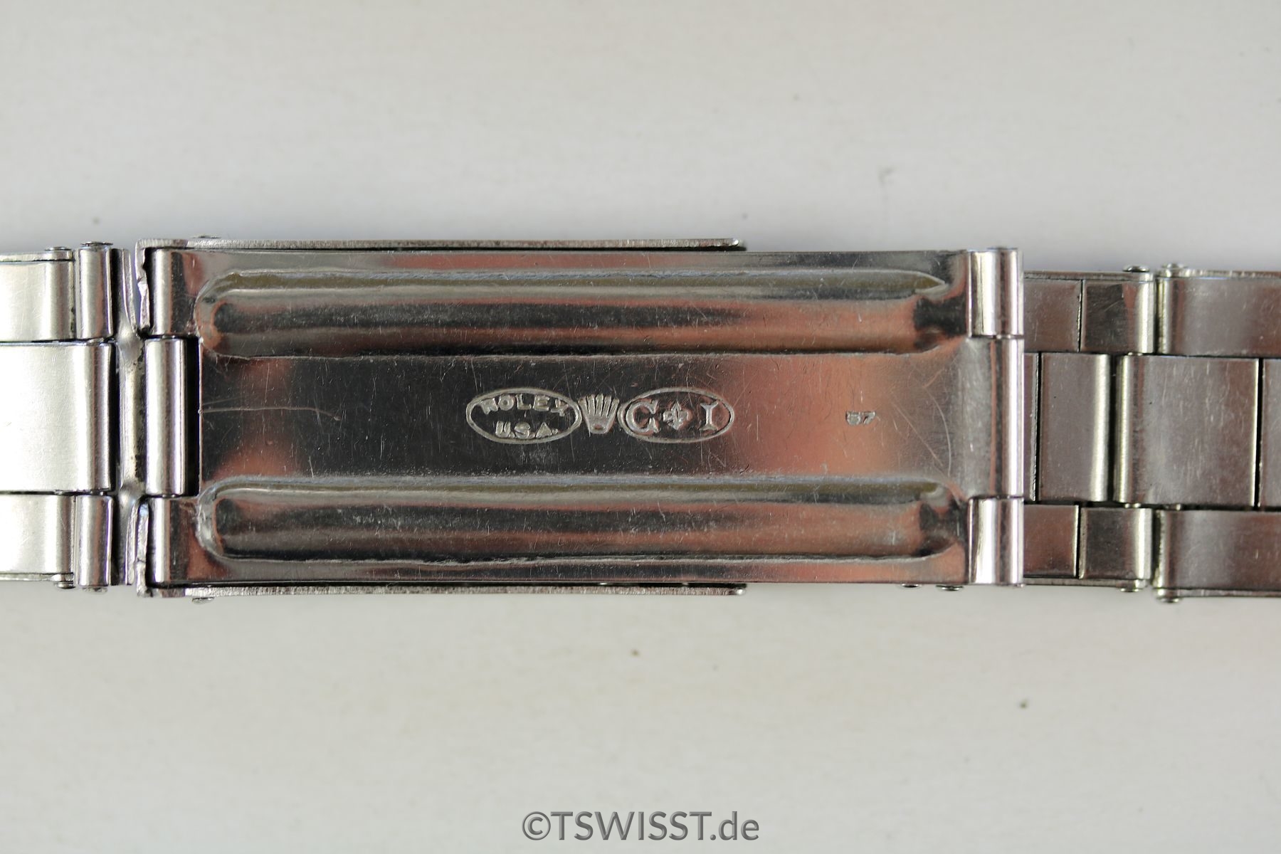 Rolex Flex Band für Submariner Small Crown und andere. Datumstempel : 1957 U.S.A. Version mit 11 Gliedern in sehr gutem Zustand. Alle Federn in Takt.
