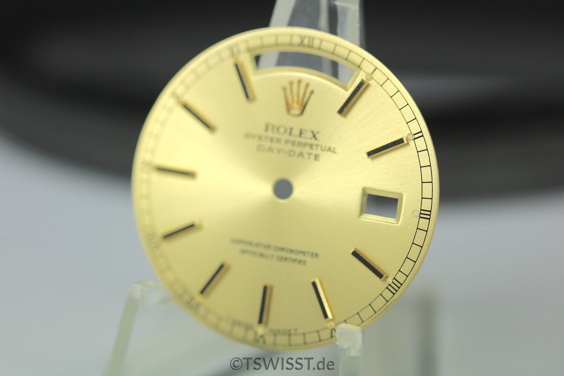 Rolex dial for Day-Date 18038 yellow gold bar index in very good condition – lume is tritium.