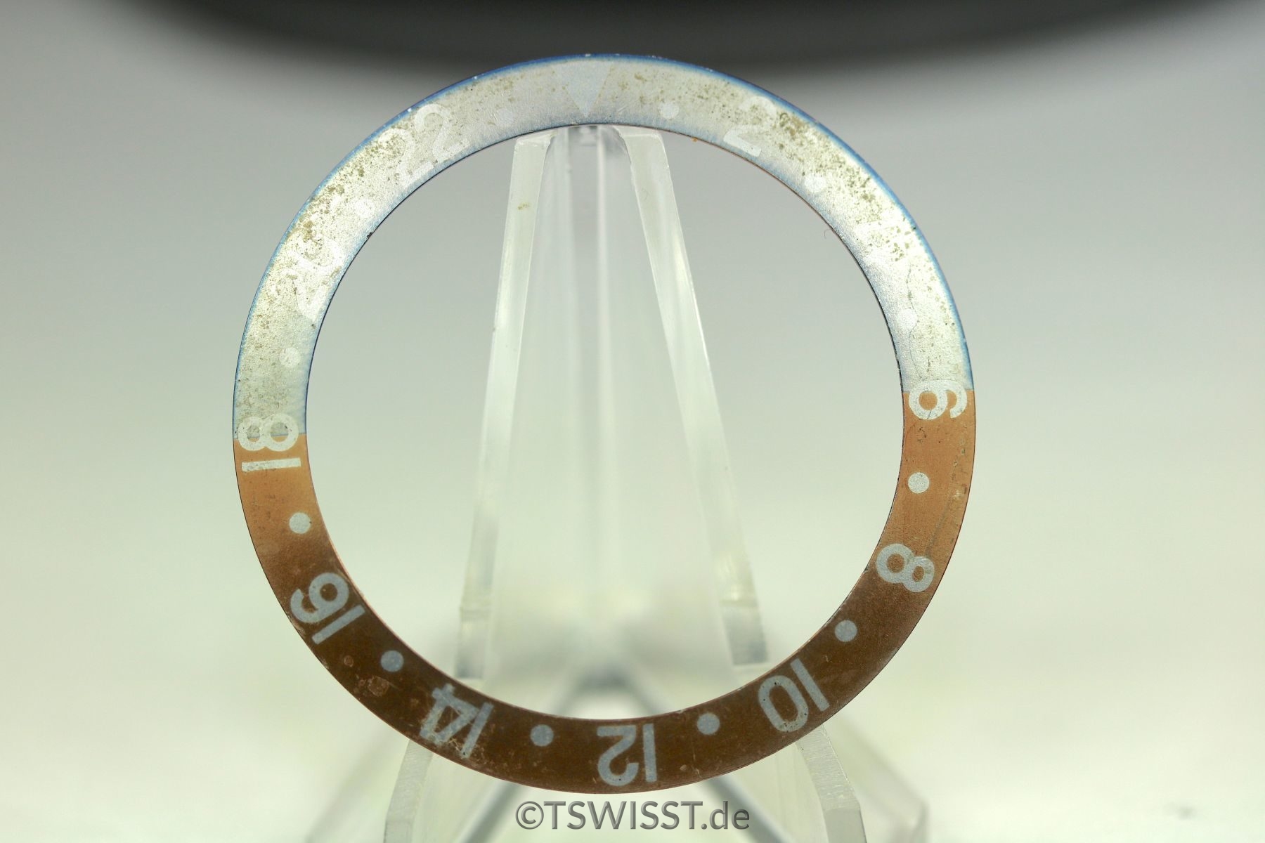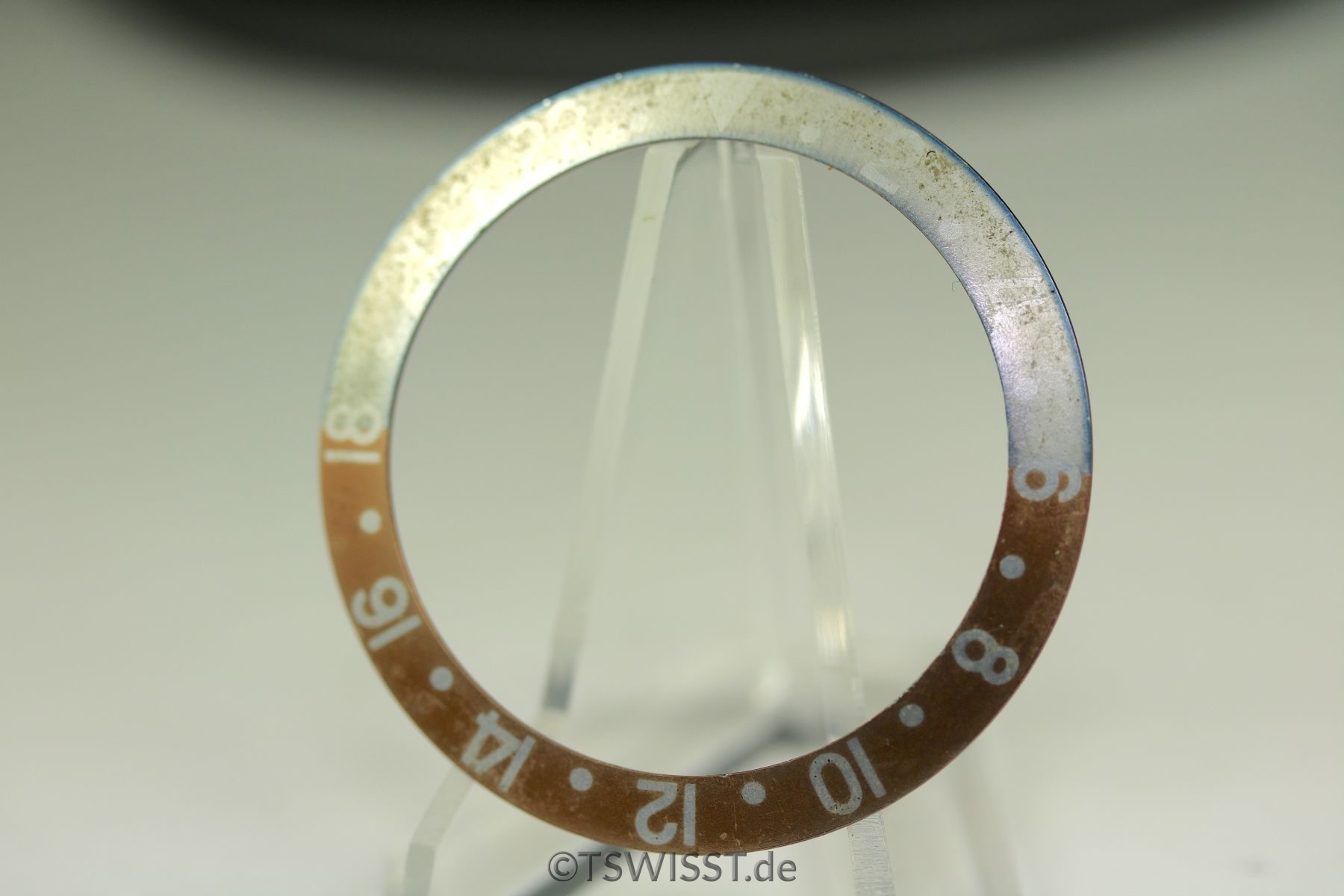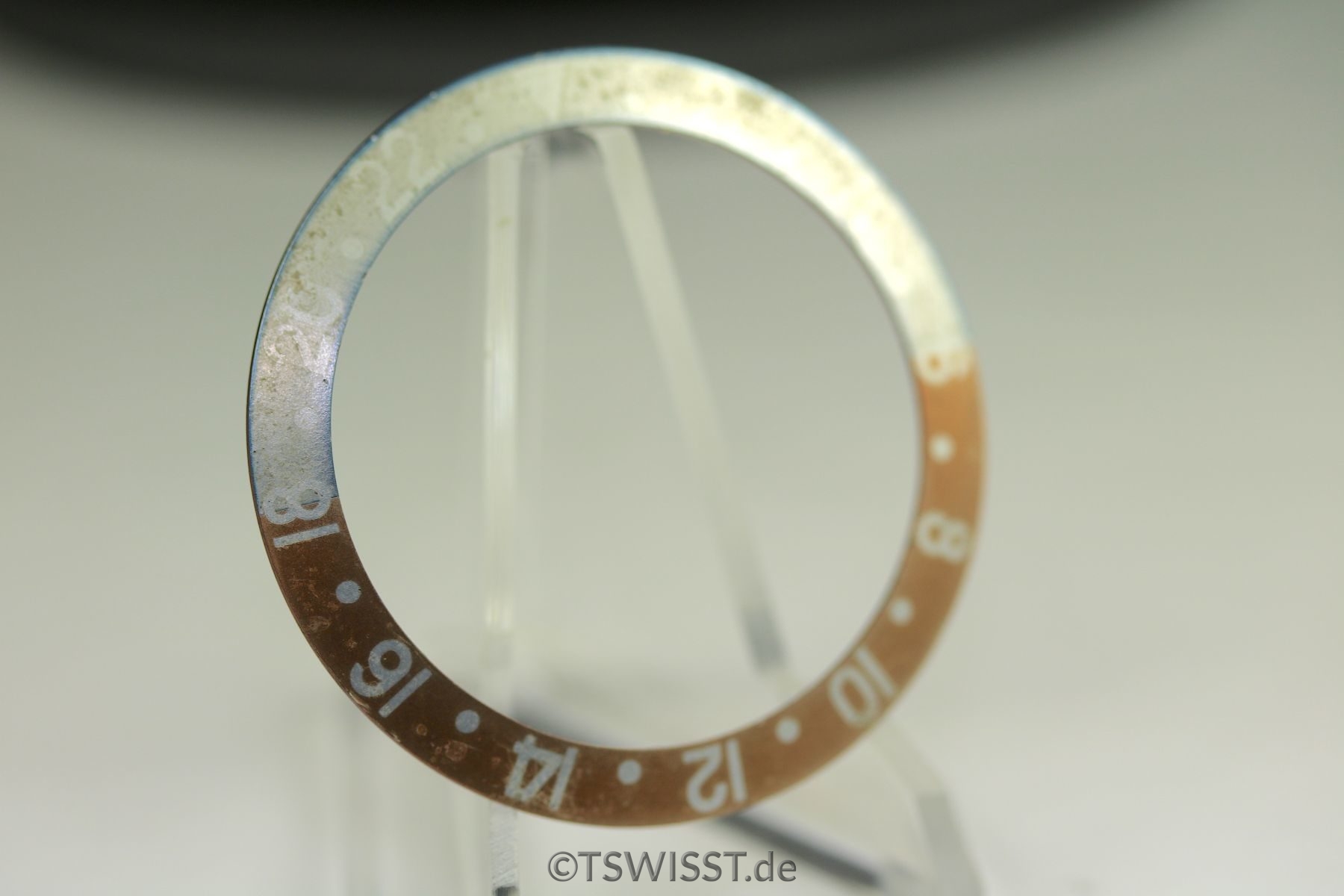 Rolex Lünetteneinlage für GMT 1675 Tigerauge und Goldmodelle fat font stark gefadet.