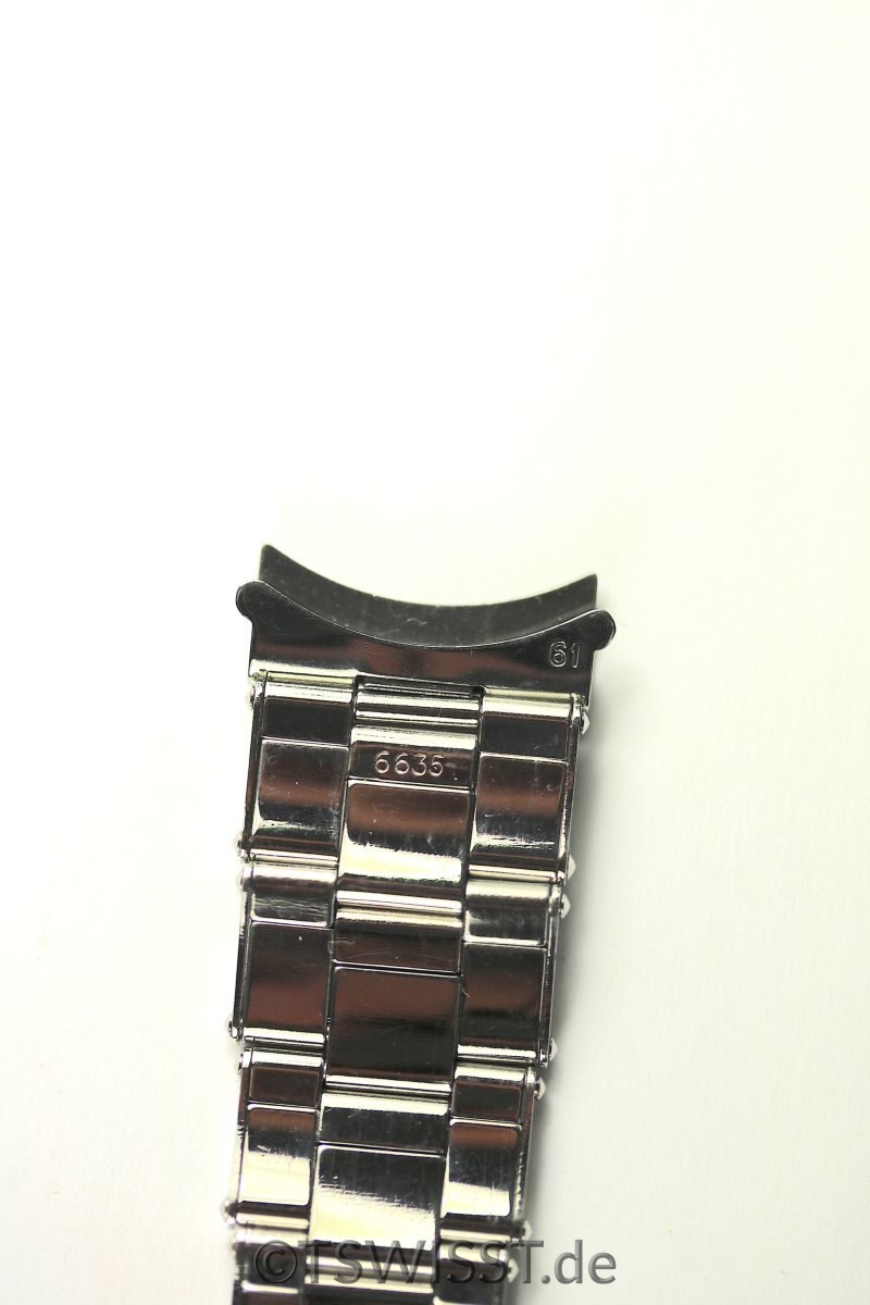 Rolex Nietenzug- Band 6635 mit 61 Endlinks in perfektem Zustand. Alle Federn funktionieren einwandfrei, Oberfläche und Schliesse perfekt. Datumstempel ist 4 / 66.
