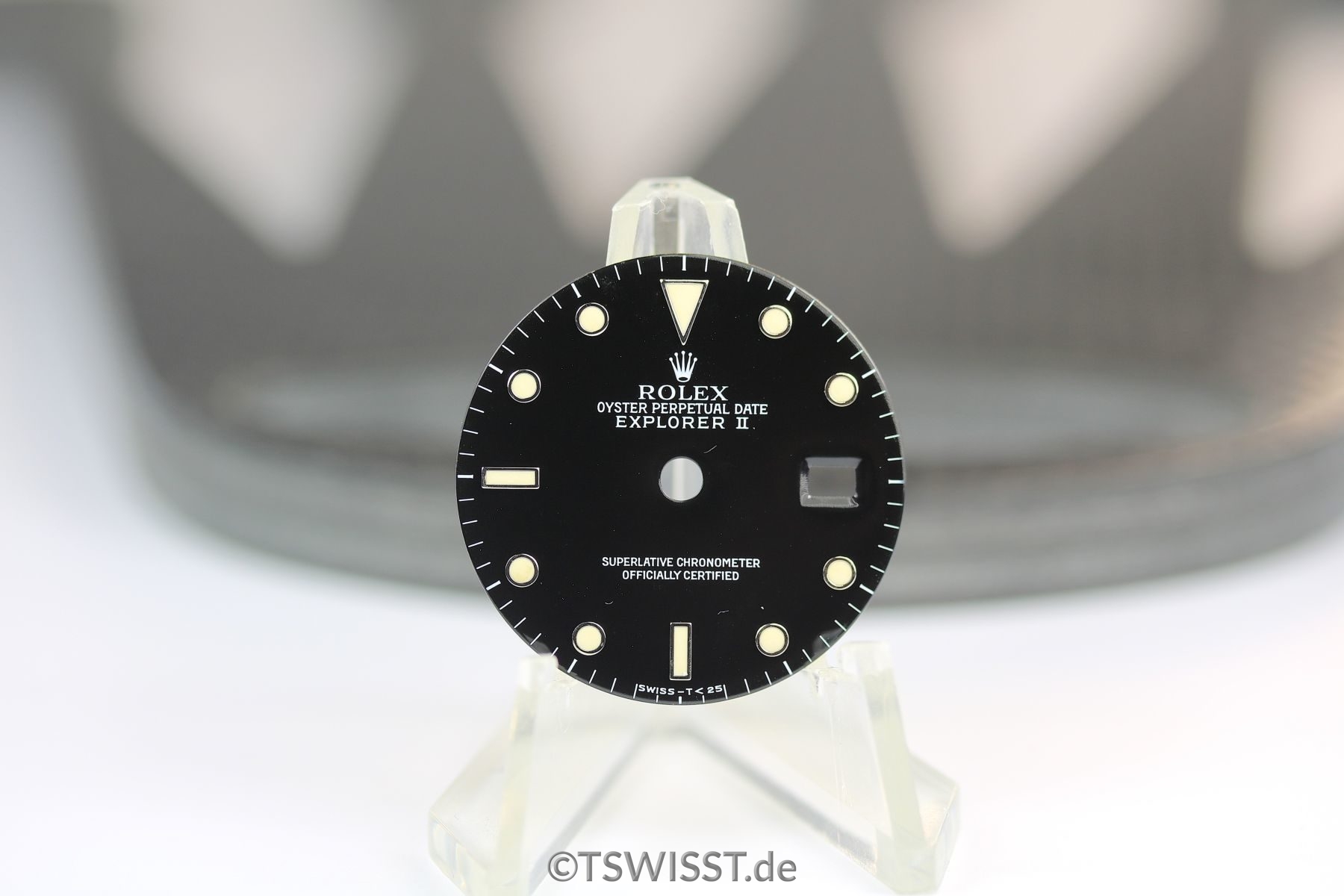 Rolex Zifferblatt für Explorer 16570 / 16550 schwarz in guter bis sehr guter Erhaltung, Leuchtmittel ist Tritium.