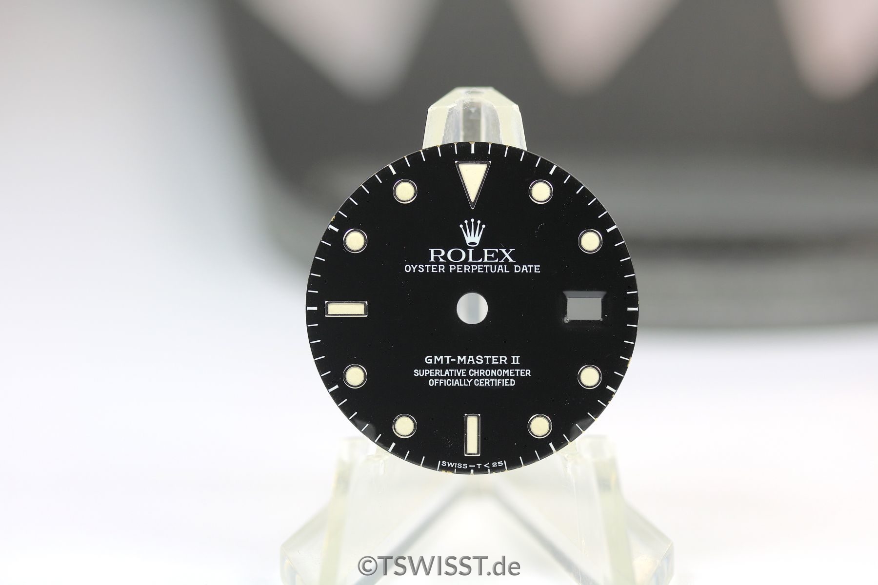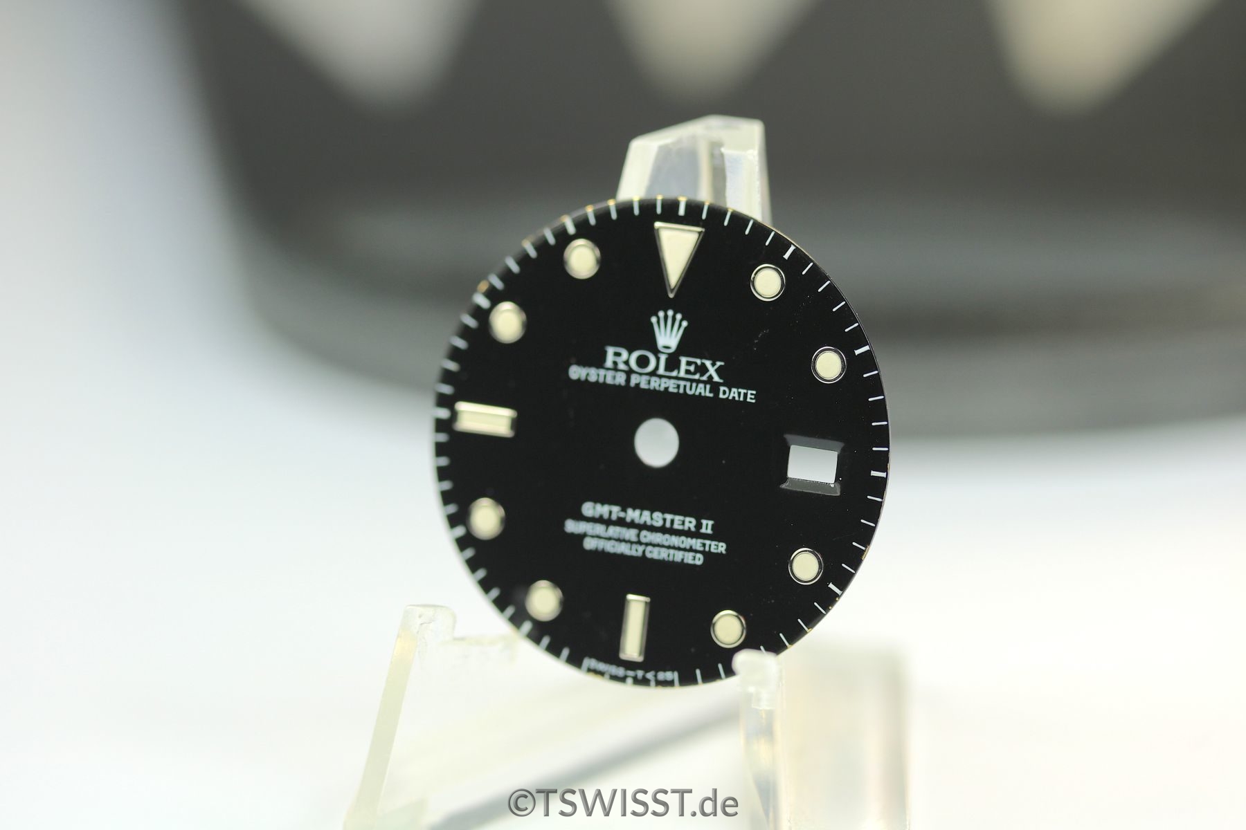 Rolex Zifferblatt für GMT-Master 16710 und andere in gutem Erhaltungszustand mit leichten Blasen auf dem Blatt, Leuchtmittel ist Tritium.