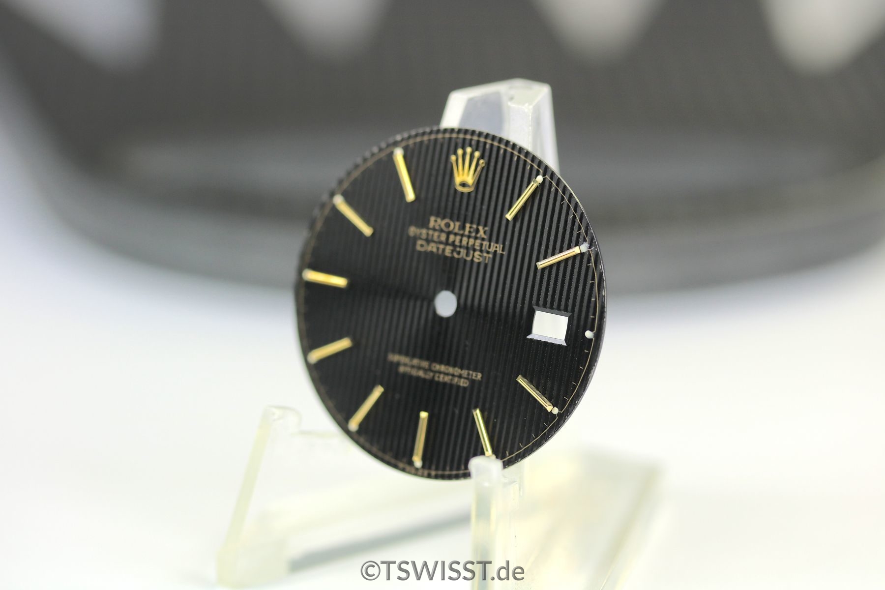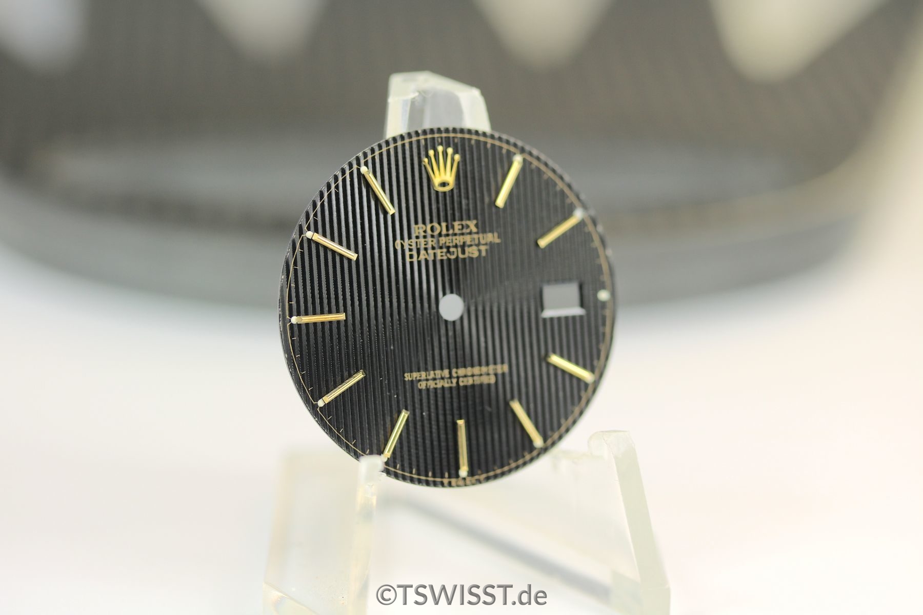 Rolex dial for OP Datejust 36 mm Tapestry black index yellow gold in good condition, lume is tritium (relumed).