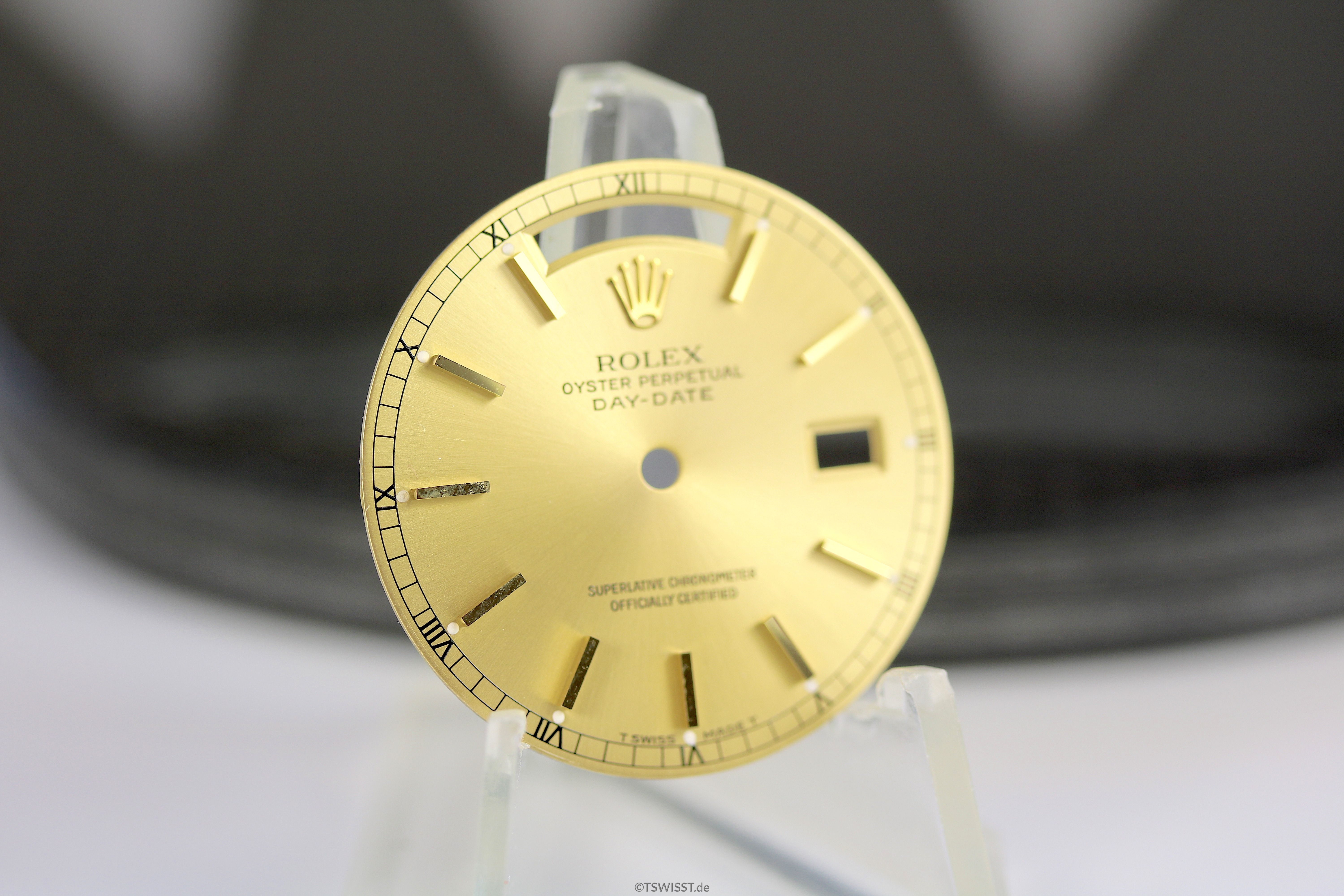 Rolex Zifferblatt für OP Day-Date 36 mm Index gelbgold in sehr gutem Zustand. Leuchtmittel ist Tritium.