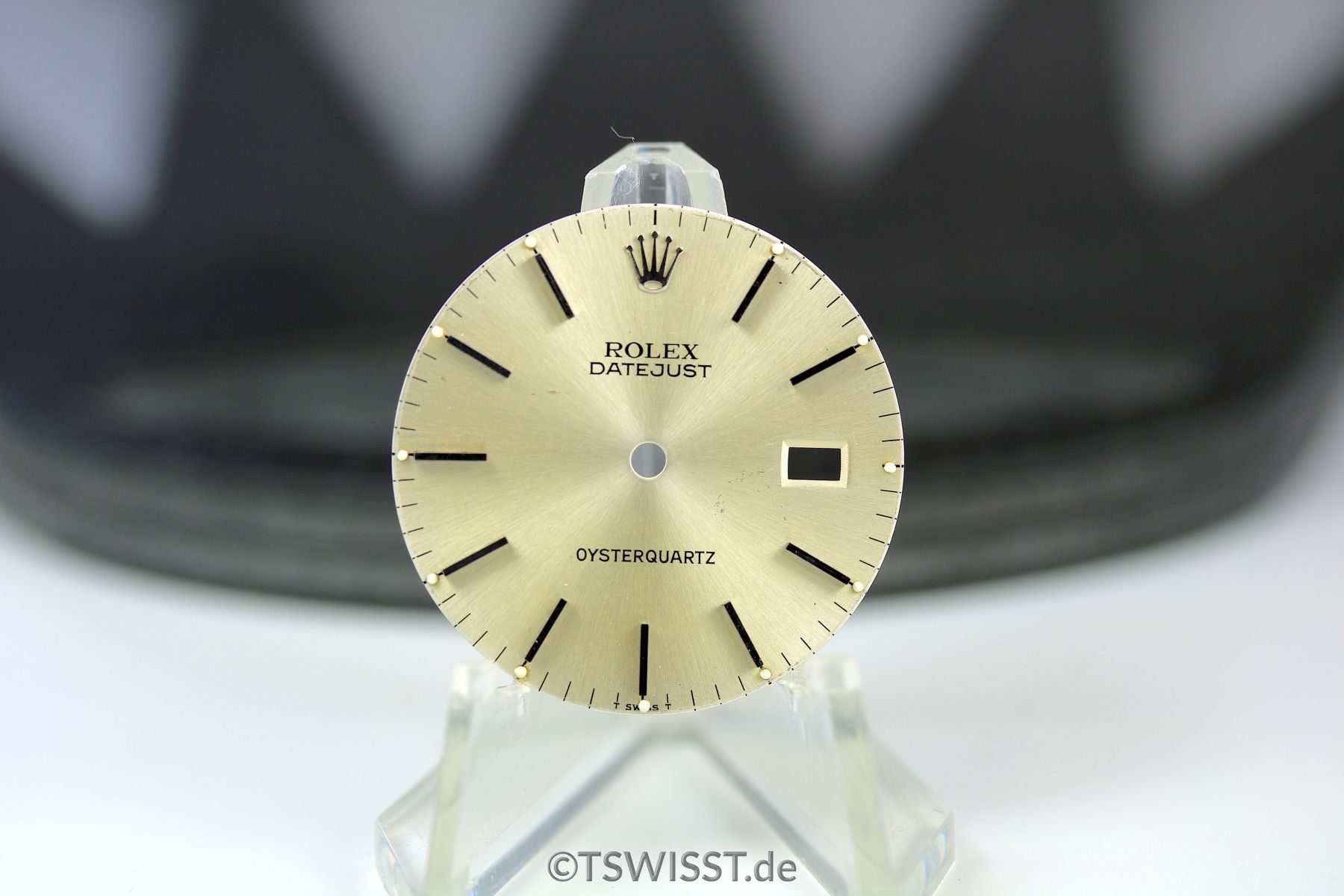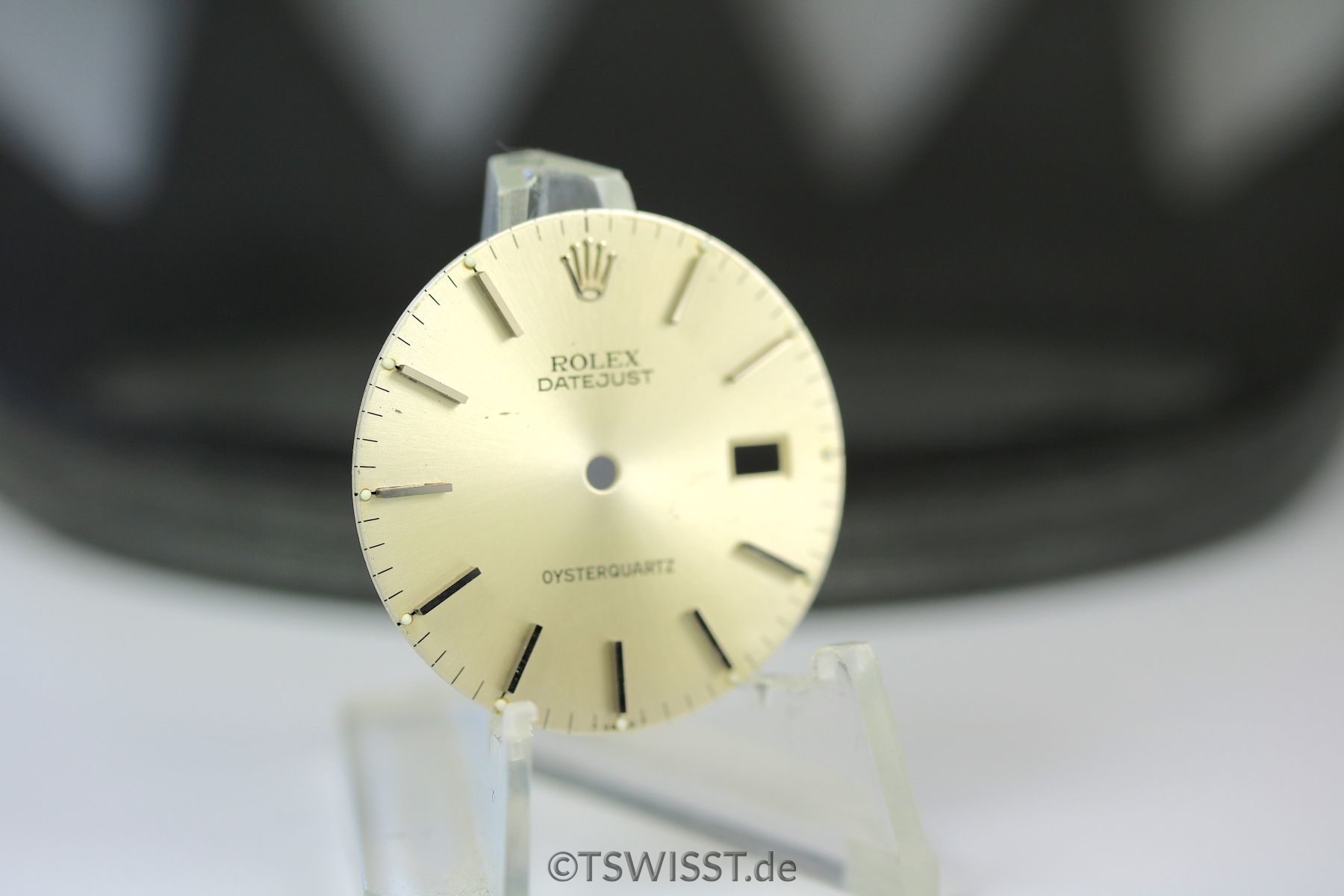 Rolex Zifferblatt für Oysterquartz Datejust 17014 1. Serie (MKI) weißgold Index in sehr guter Erhaltung, Leuchtmittel ist SL (grün).