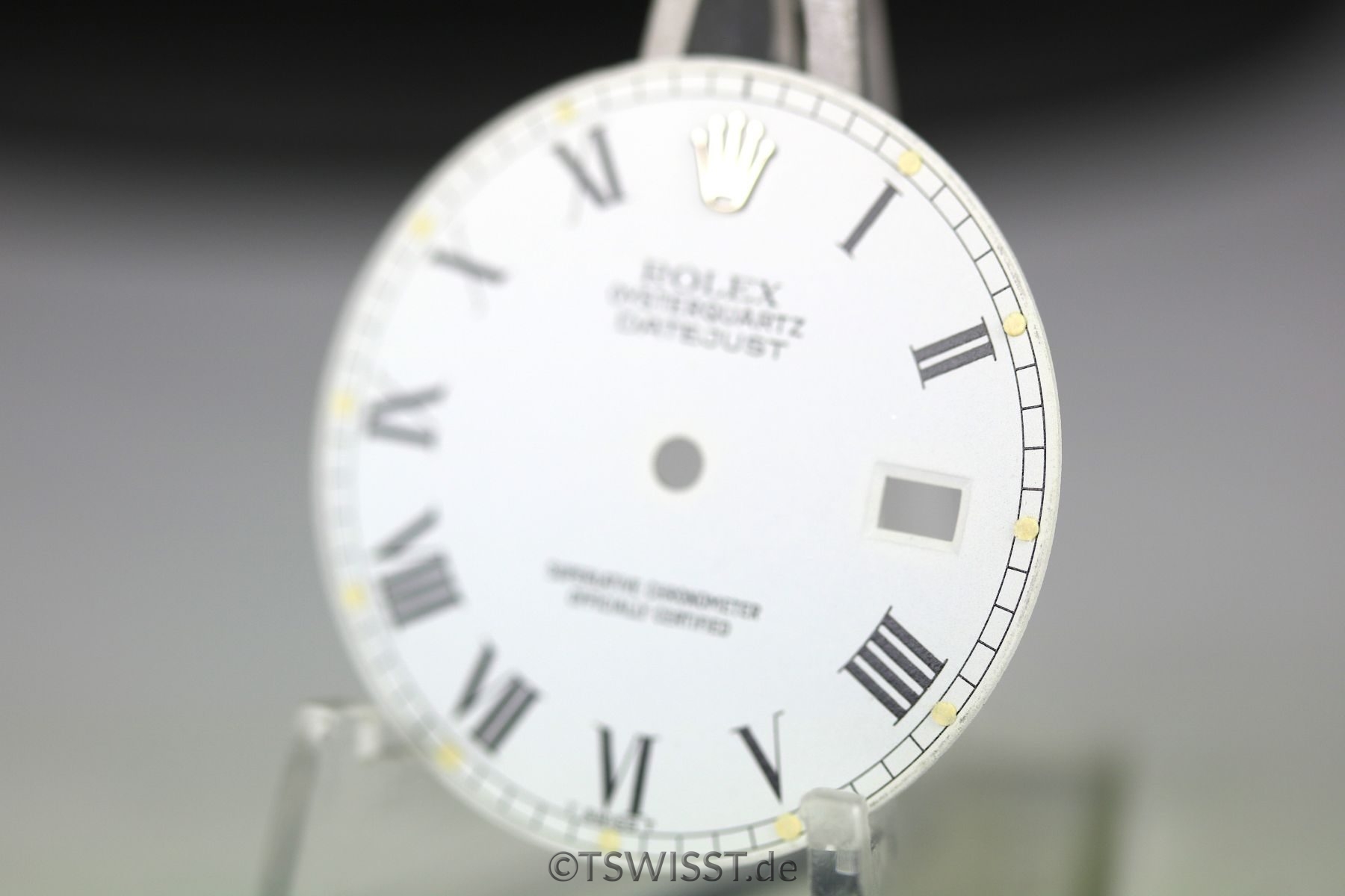Rolex Zifferblatt für Oysterquartz Datejust hartweiß „Buckley Version“ für Stahl und Stahl/Gold Versionen in sehr guter Erhaltung.