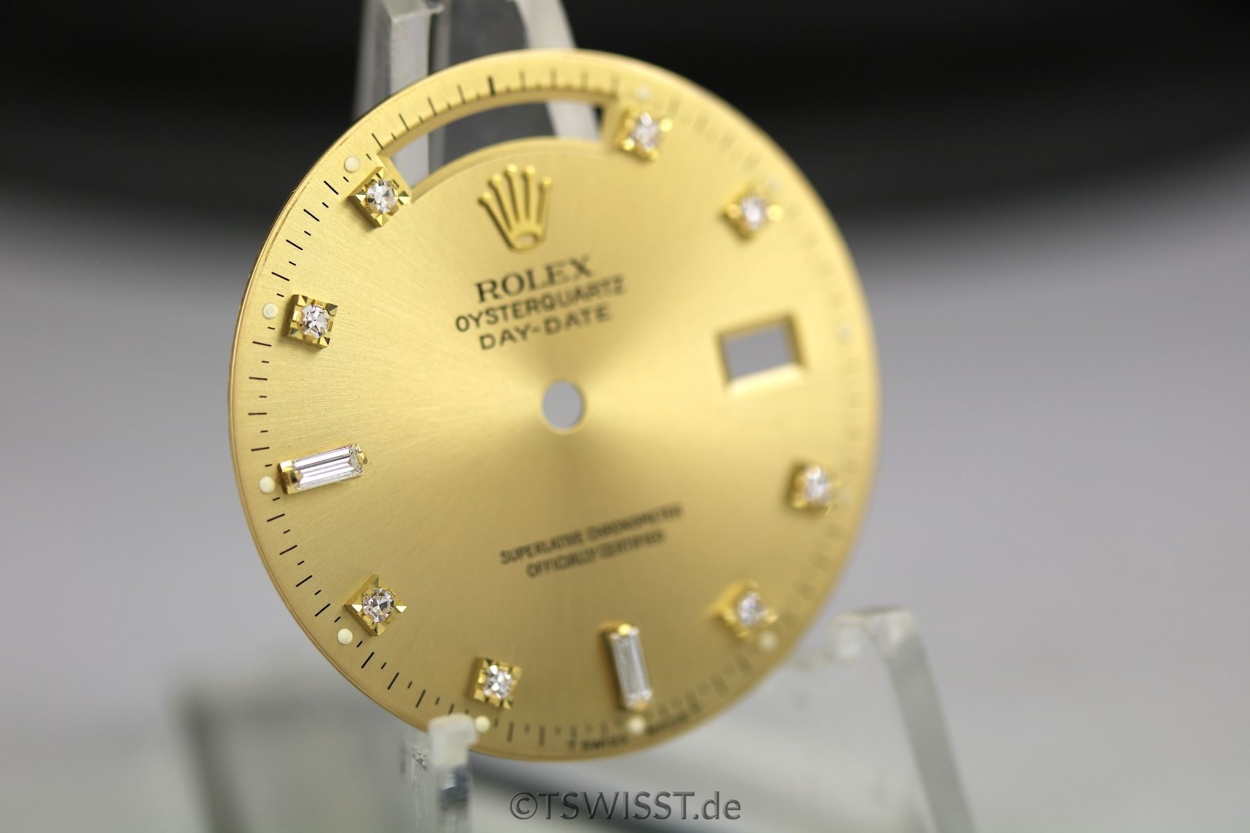 Rolex Zifferblatt für Oysterquartz Day-Date gold Diamant Index original Besatz im Neuzustand.