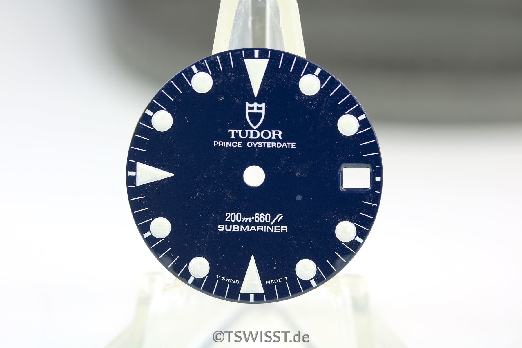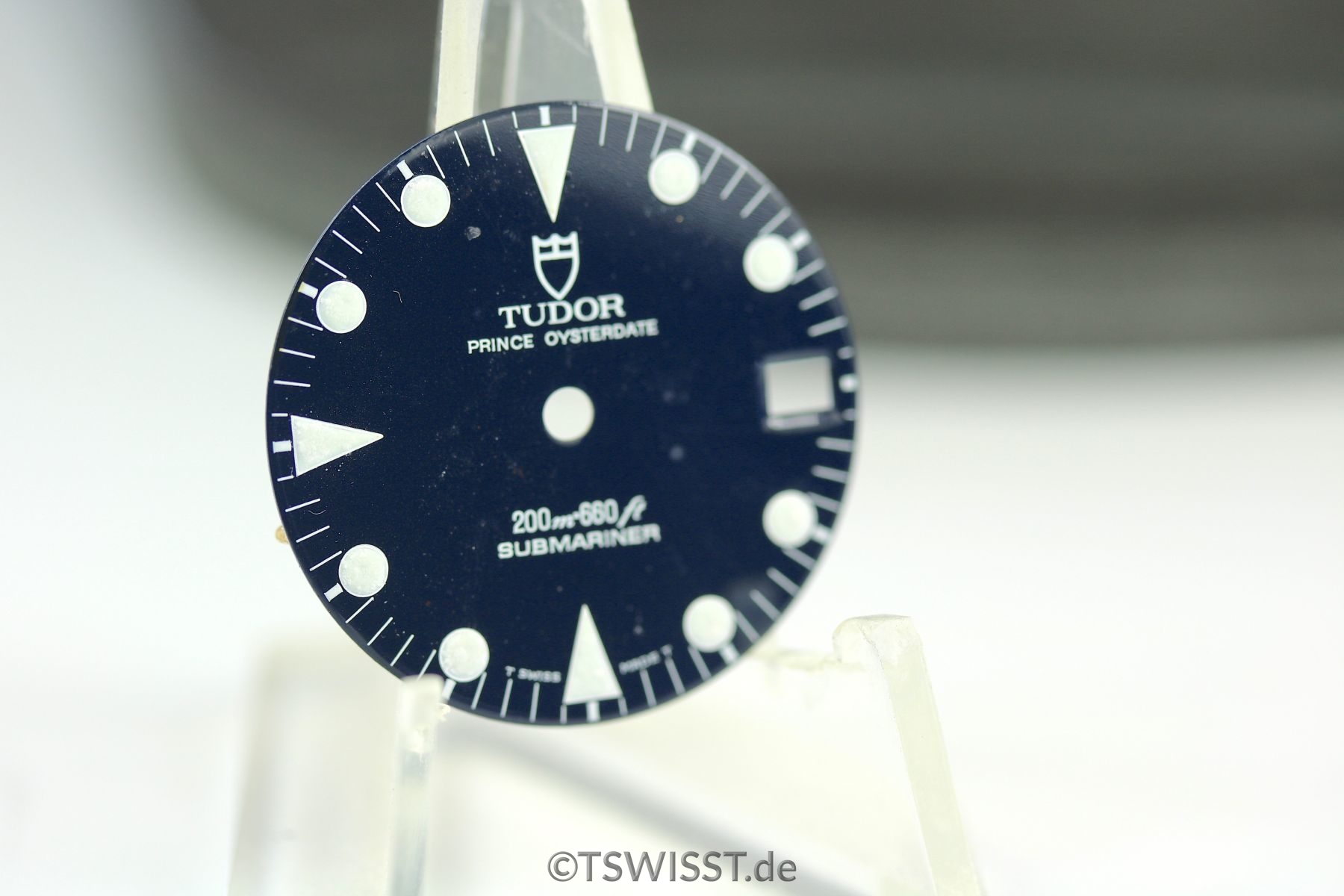 Rolex Zifferblatt für Tudor Submariner 79090 in mittelmäßiger Erhaltung, Leuchtmittel ist Tritium.