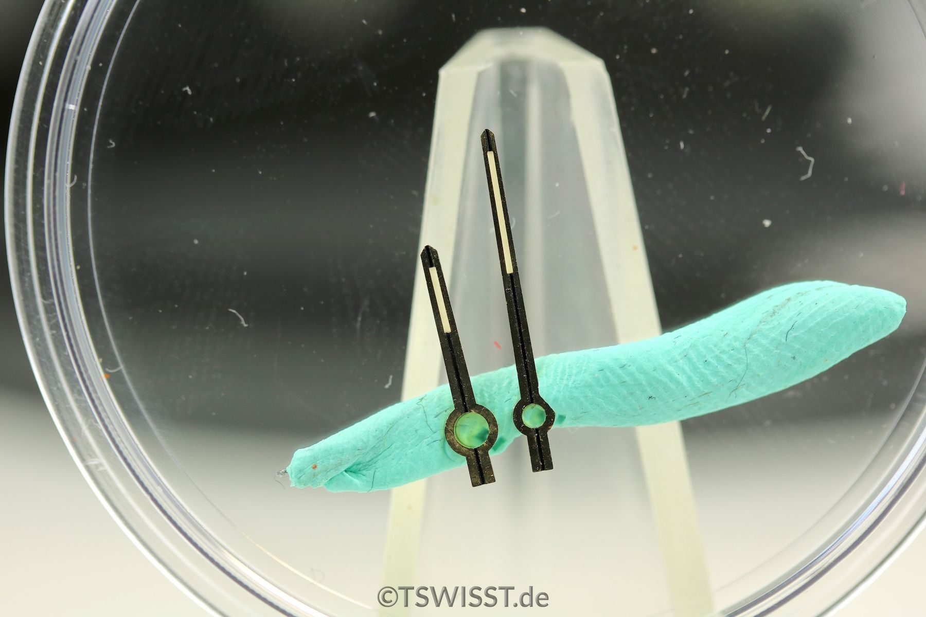 Zeigersatz  für Rolex Daytona 16528 / 16523 schmale Version. Lume ist Tritium. Nur Stunden- und Minutenzeiger