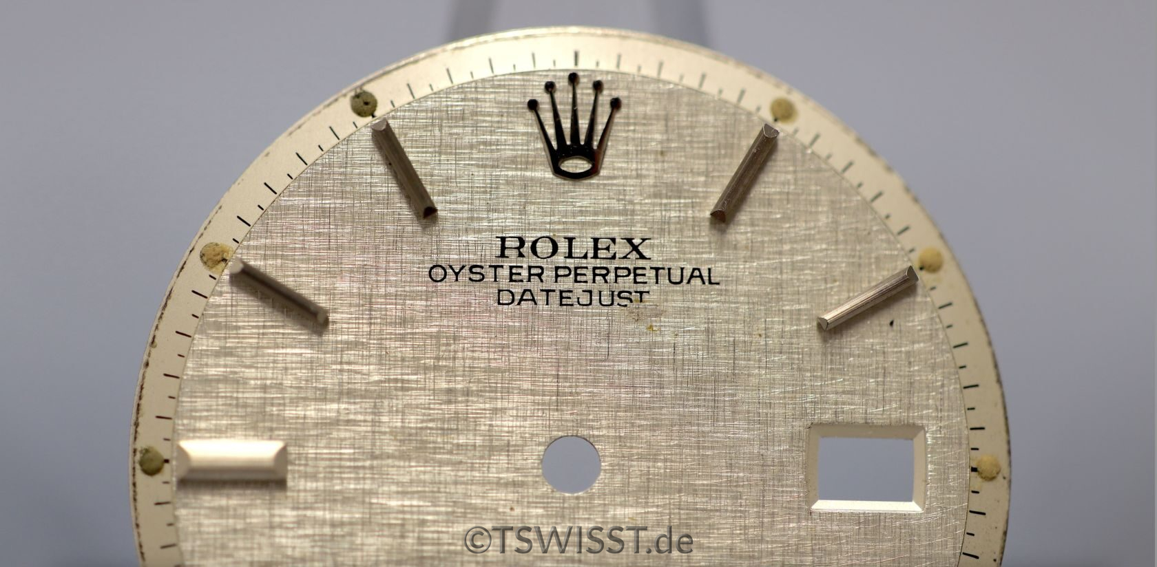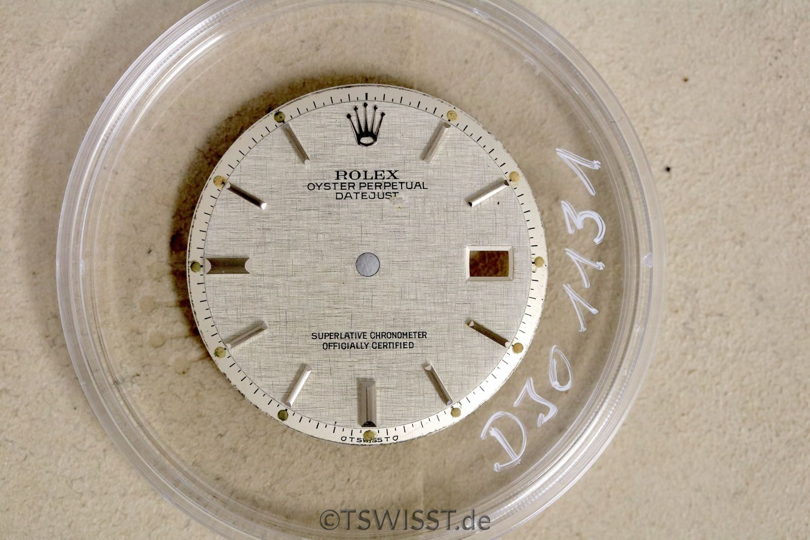 Gut erhaltenes Rolex Datejust-pie-pan Zifferblatt in der Sigma/Linen version.