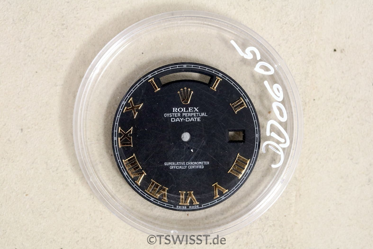 Unused black matte dial for Rolex Day Date II- only this one: 218235, rosegold version. All you see on the dial is just dust.