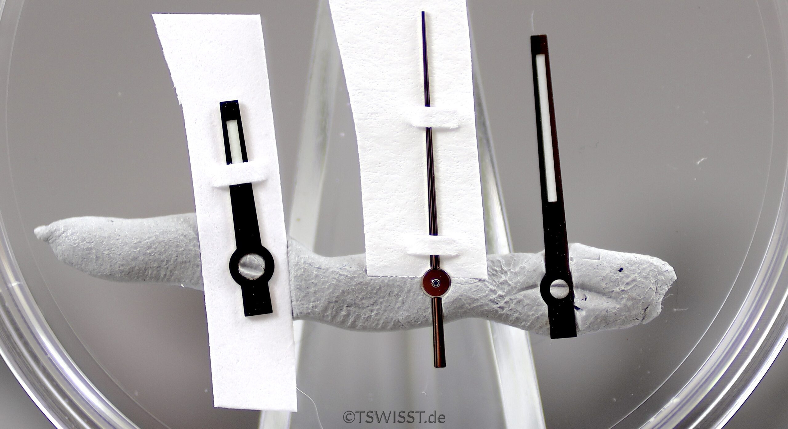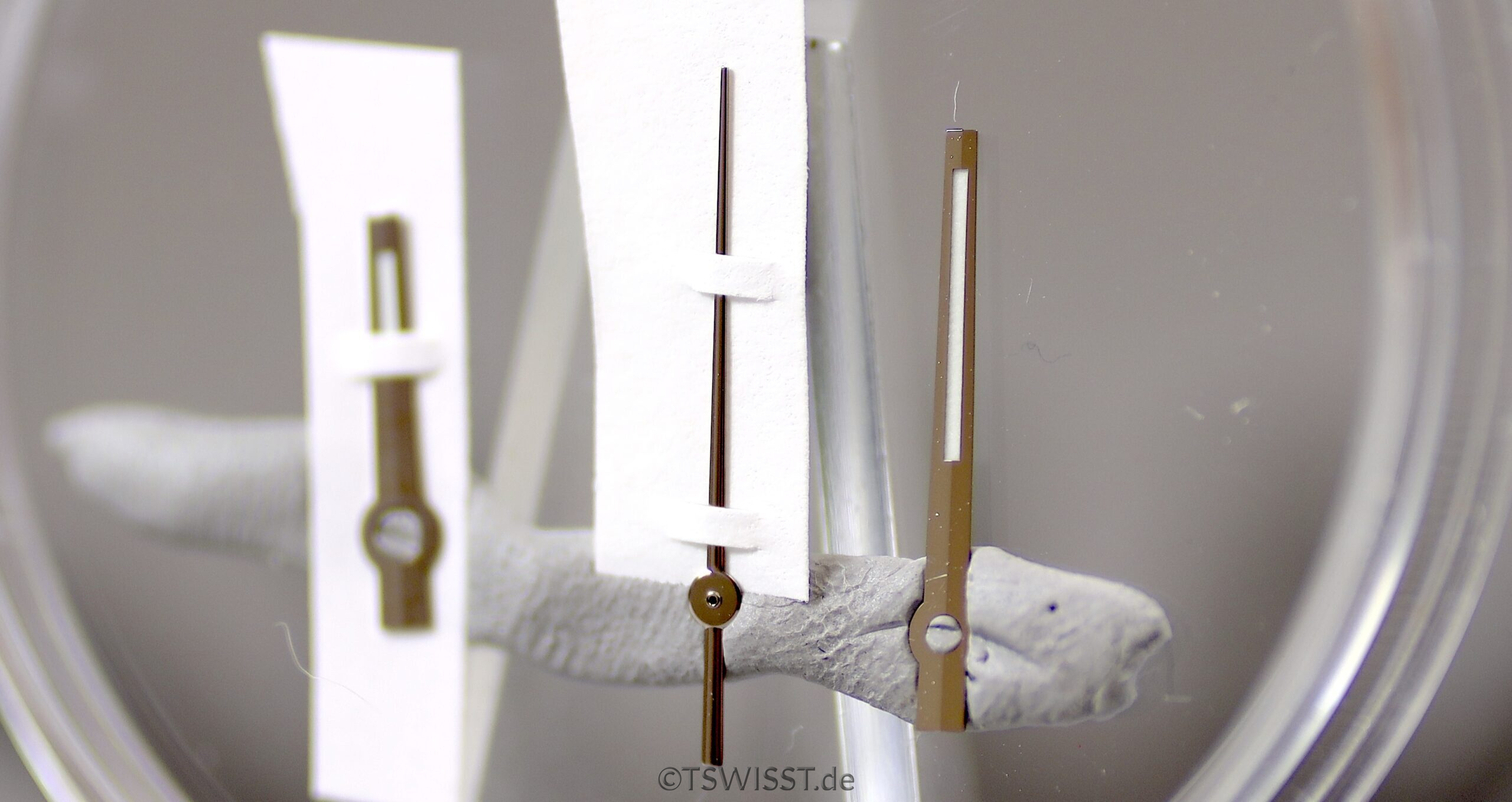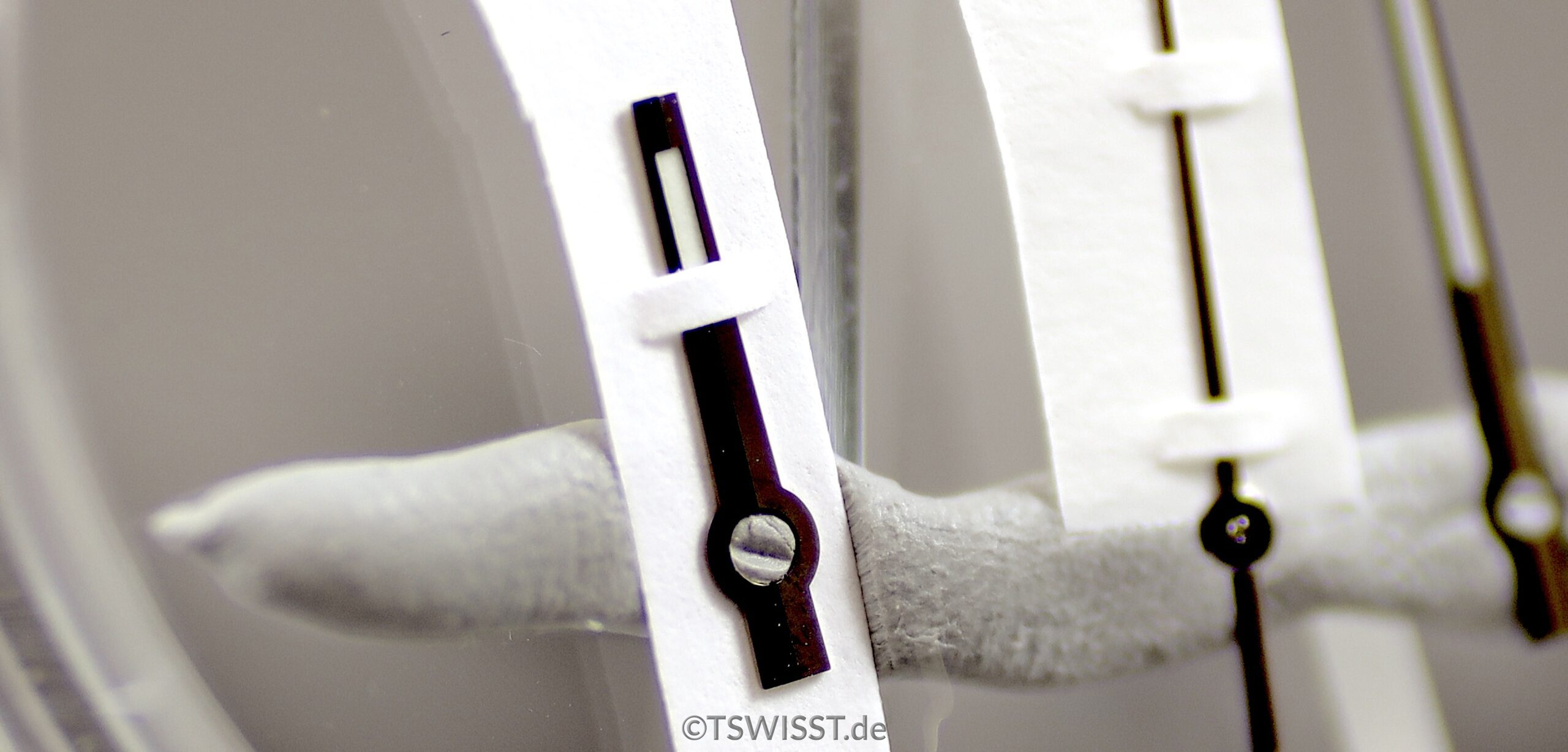 Nagelneuer Zeigersatz weissgold für DD II 218239 (nur DD II) Leuchtmittel ist SL (Superluminova, grün)