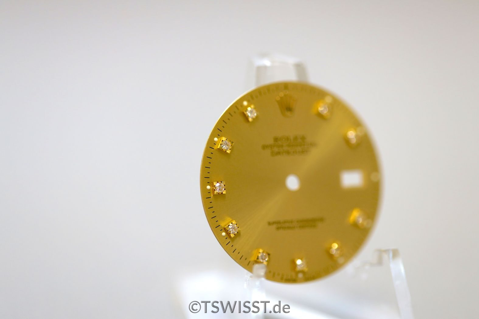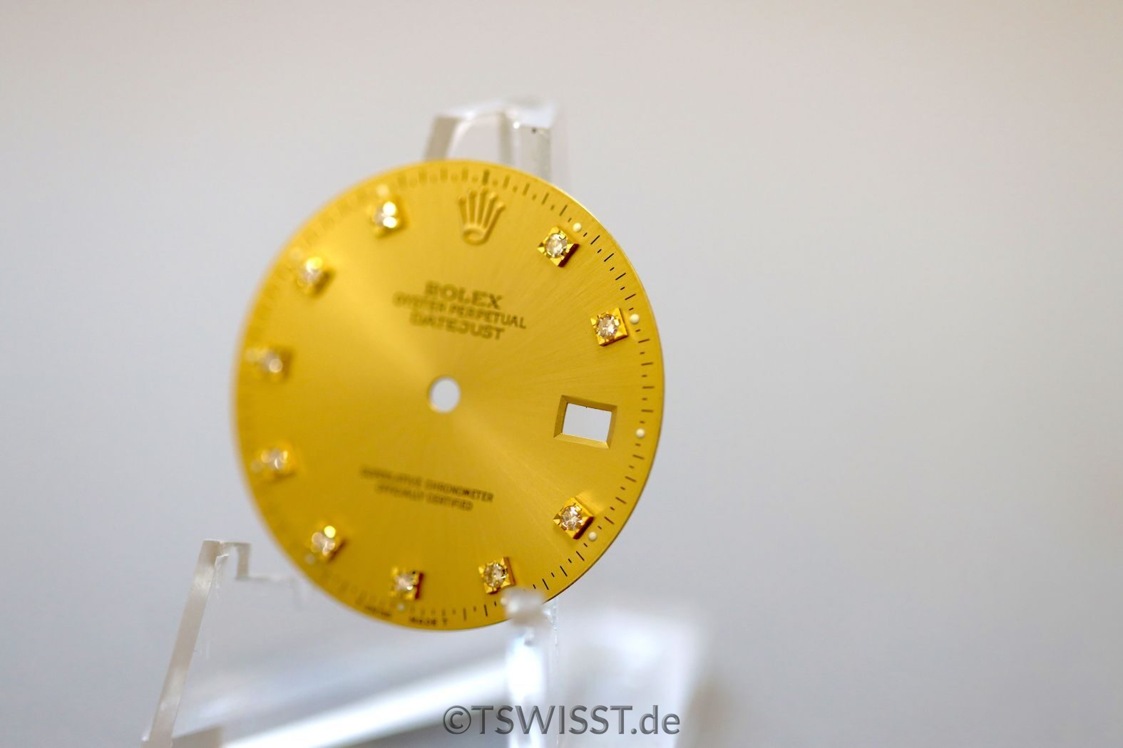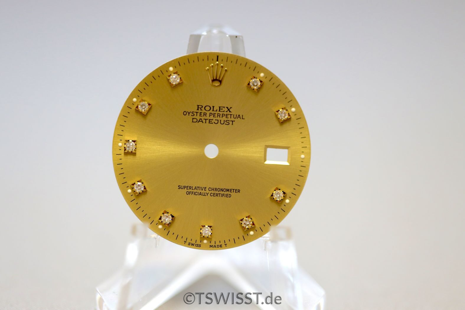 Wunderbar erhaltenes Brilli-Zifferblatt für Rolex Datejust 16013 und andere 5stellige Referenzen. Farbe gold mit originalem Besatz. Leuchtmittel ist Tritium.