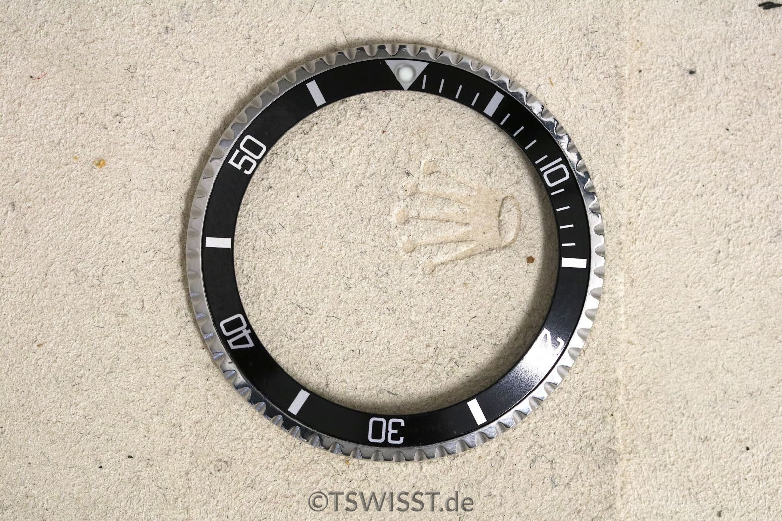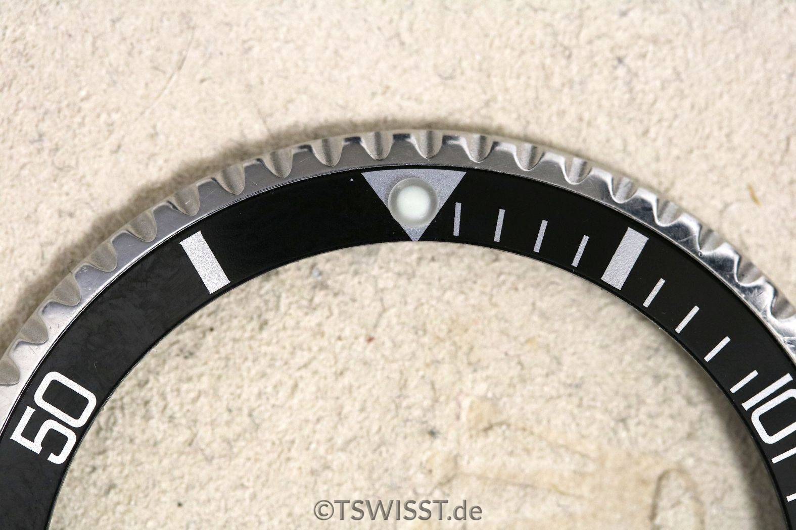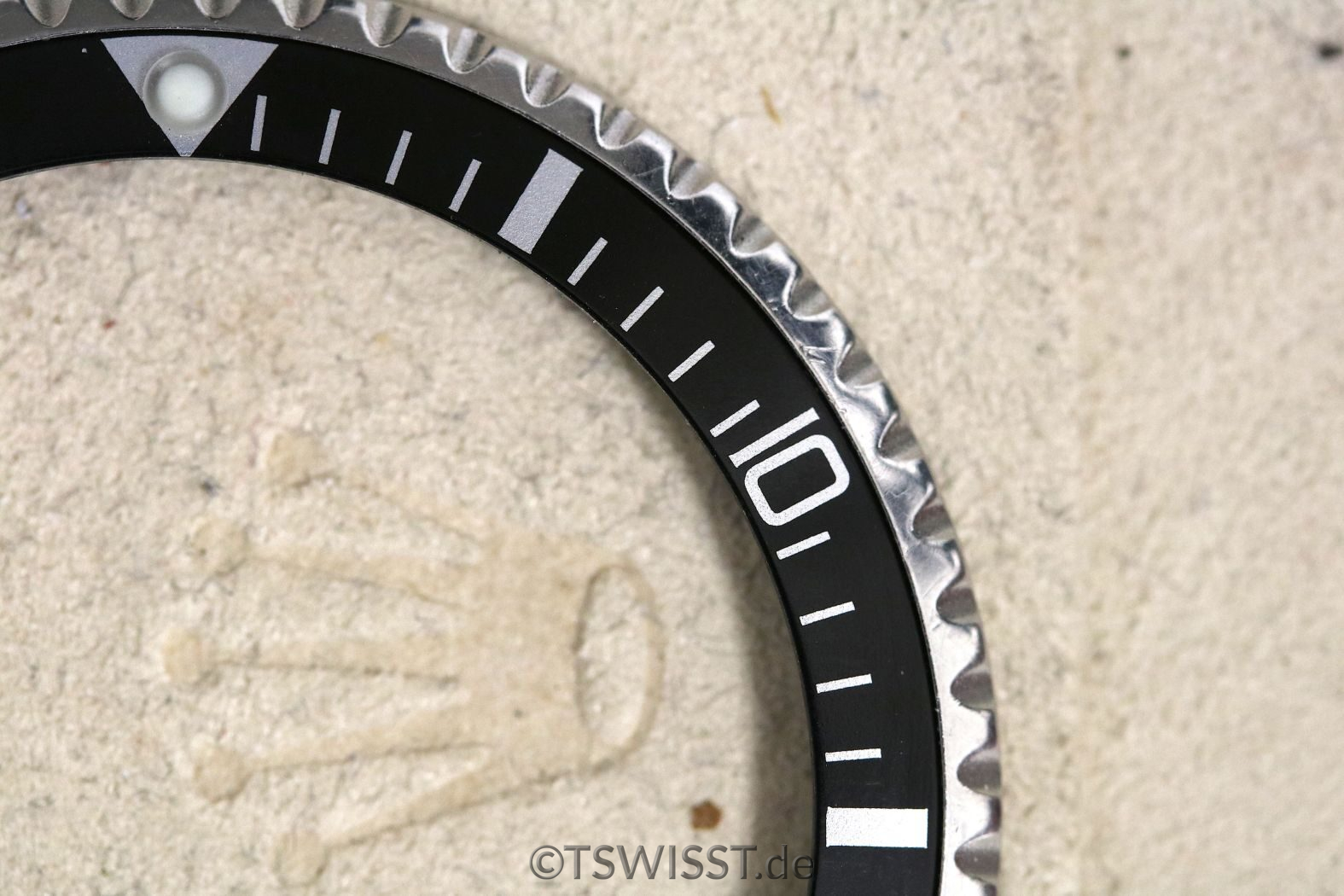 Extrem gut erhaltene Lünette für Rolex Submariner 5512, 5513 und 1680. Keine Beschädigungen, sehr gute Verzahnung. Inlay ohne Beschädigungen, siehe Bilder. Zusammen mit Glashaltering und Reibscheibe. Perle ist SL (Superluminova, grün)