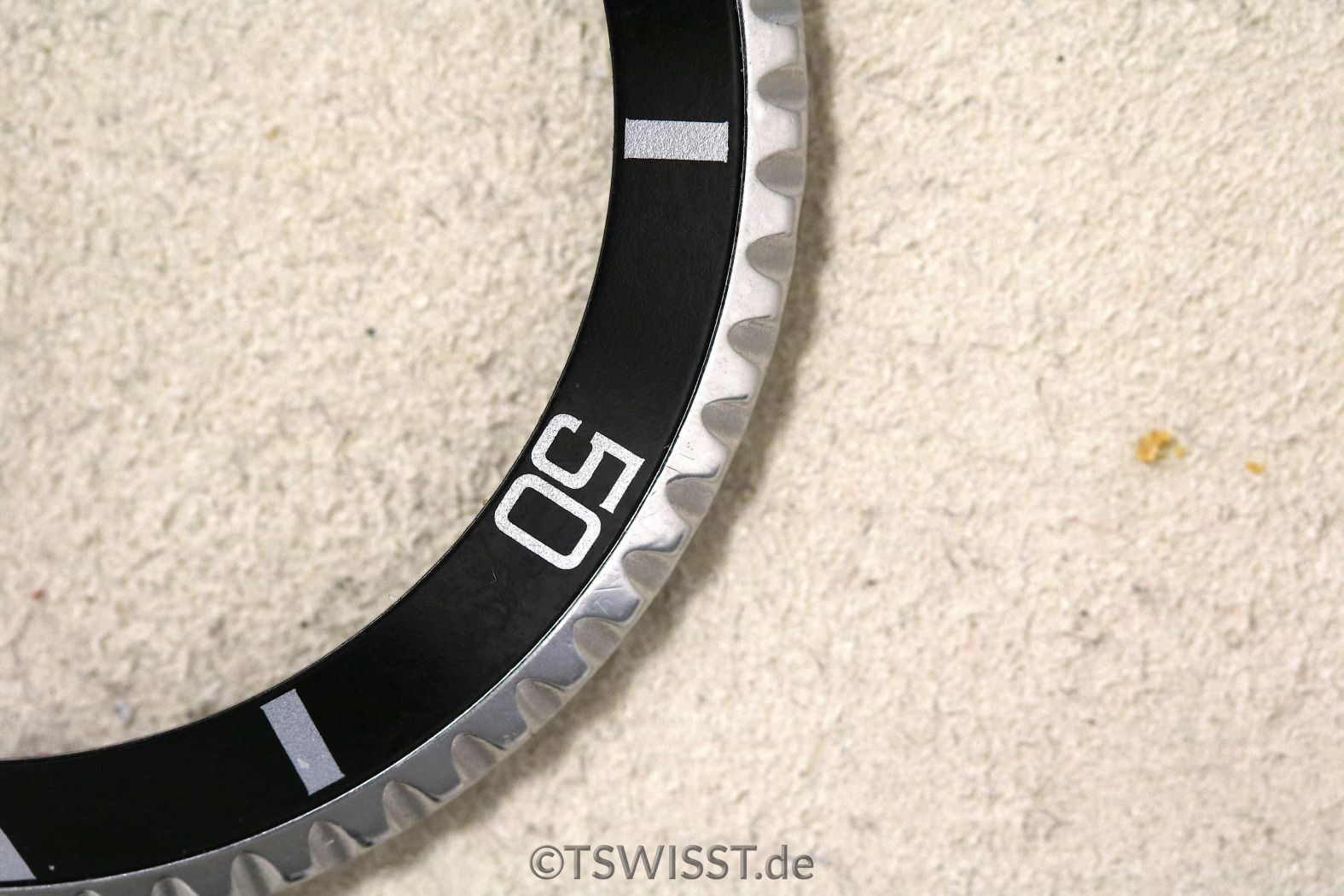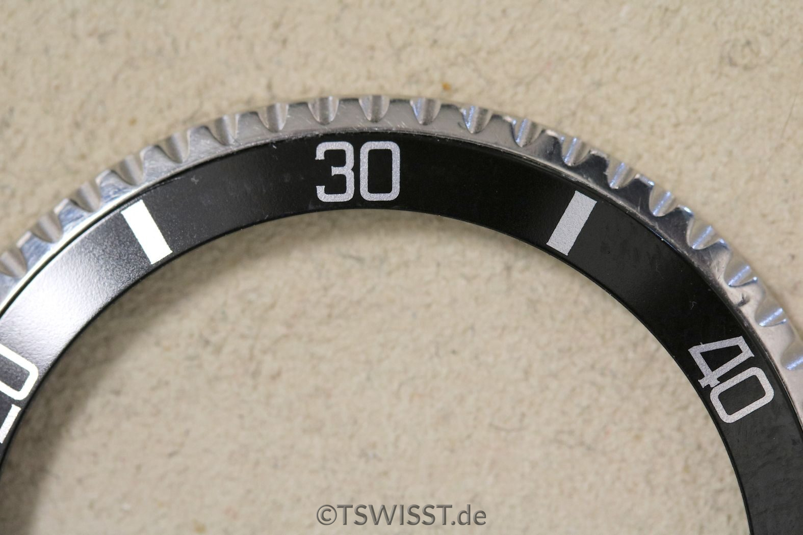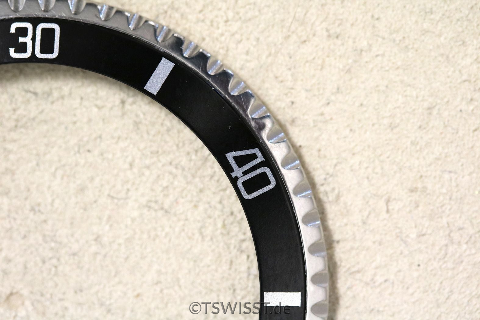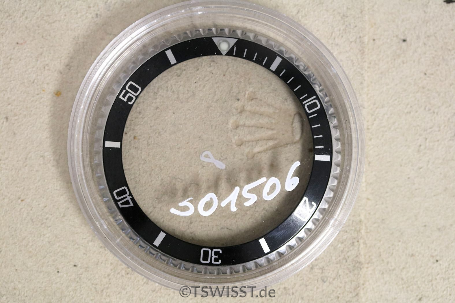 Extrem gut erhaltene Lünette für Rolex Submariner 5512, 5513 und 1680. Keine Beschädigungen, sehr gute Verzahnung. Inlay ohne Beschädigungen, siehe Bilder. Zusammen mit Glashaltering und Reibscheibe. Perle ist SL (Superluminova, grün)