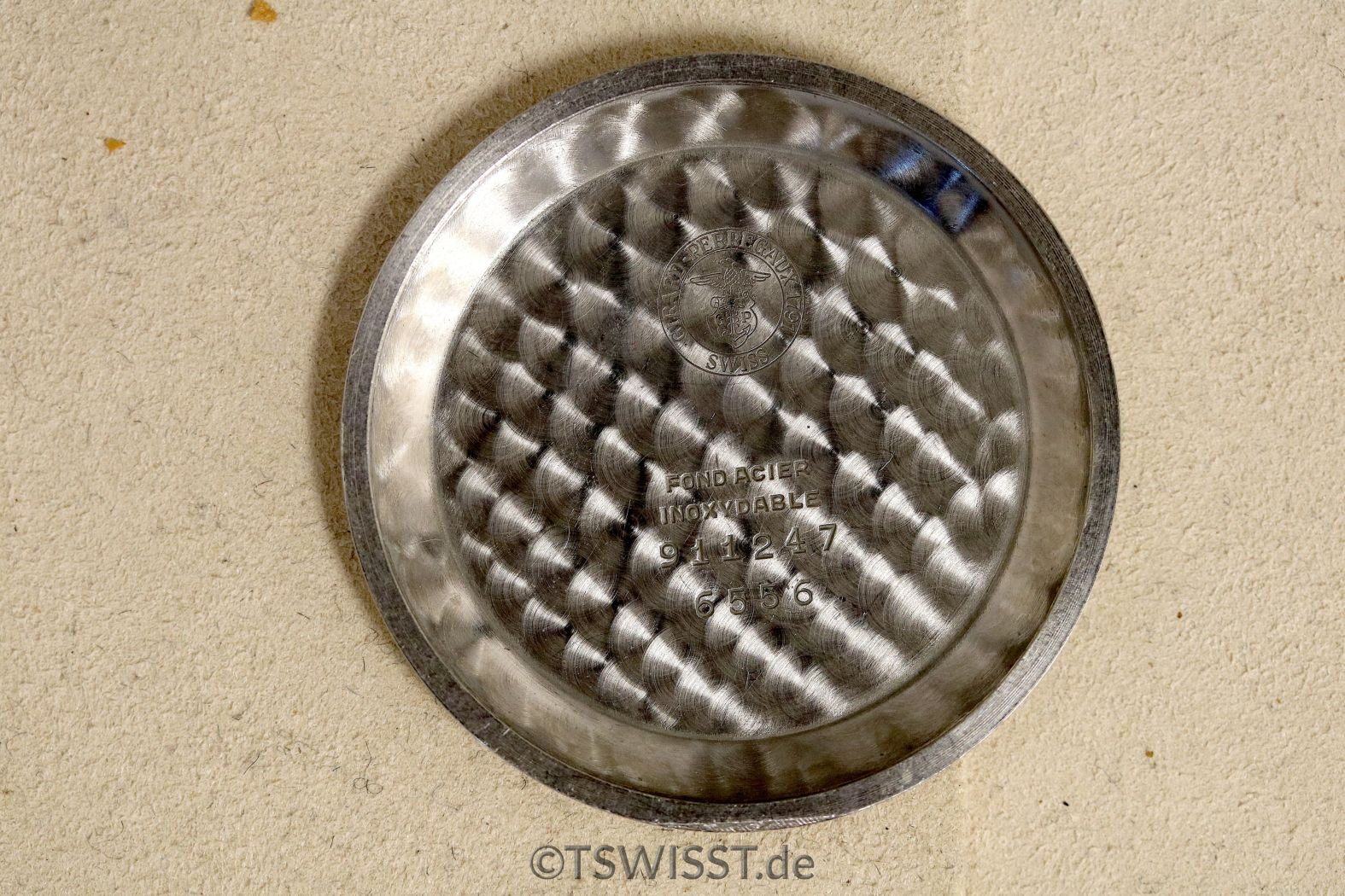 Durch den weit verbreiteten 20mm Bandanstoß lassen sich auch zeitgenössische Metallbänder montieren und leicht finden. Die Uhr hat 38mm Durchmesser. Eine wunderbare Dresswatch!
