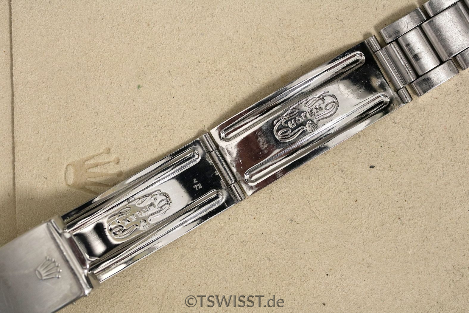 Das ganze hängt an einem überlangen 7836 Faltband in gutem Zustand. 13 Glieder sollten auch für die dicksten Handgelenke reichen. Datumsstempel ist 4/72, Endlinks 380.